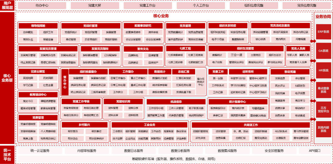 团组织全管理、青安岗全流程、工会信息填报、帮扶数据监控。
