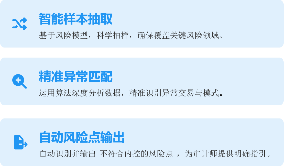 传统审计痛点:穿行测试、抽样凭证、核对交易, 工作量大且易流于形式 。
