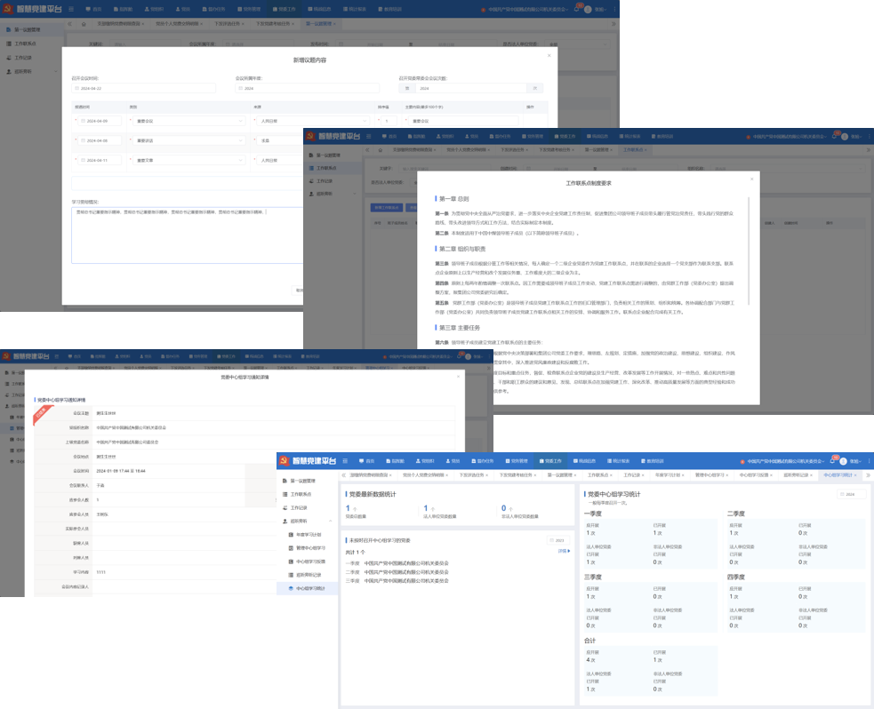 第一议题管理、完善工作记录、巡听旁听记录、计划学习统计。