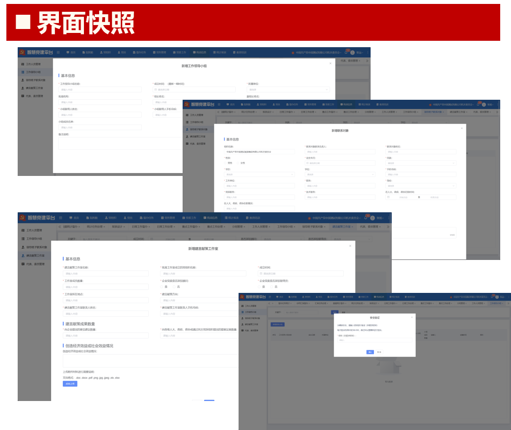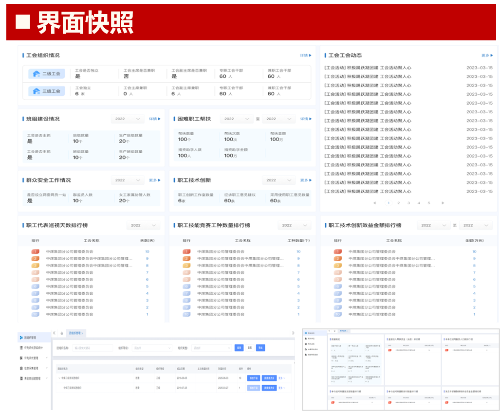 团组织全管理、青安岗全流程、工会信息填报、帮扶数据监控。