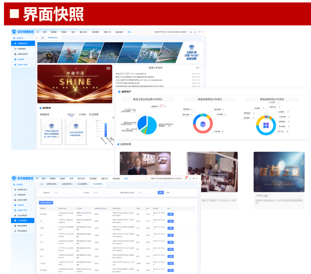 品牌首页宣传、品牌动态展示、党建政策宣导、建设队伍组建。