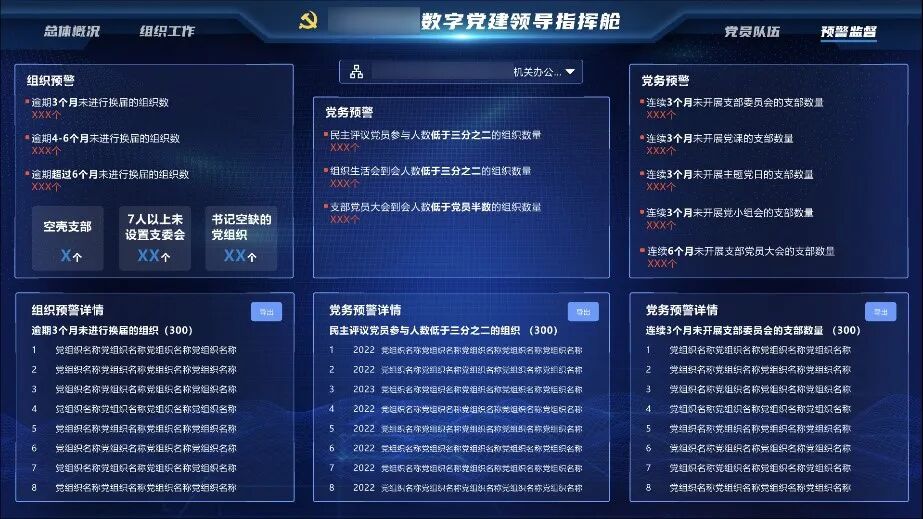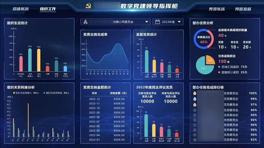 全面监控党建重点指标,快速了解各深度支撑情况,实现高效管理。