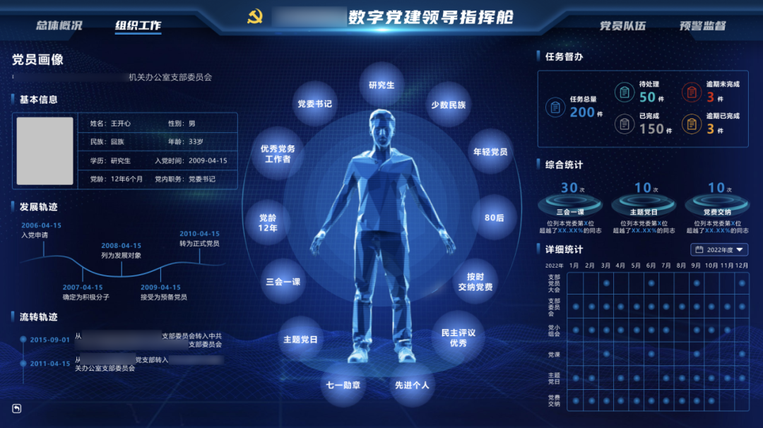 根据每一个人产生的个人画像,能够精准查看每一个党员的特点。